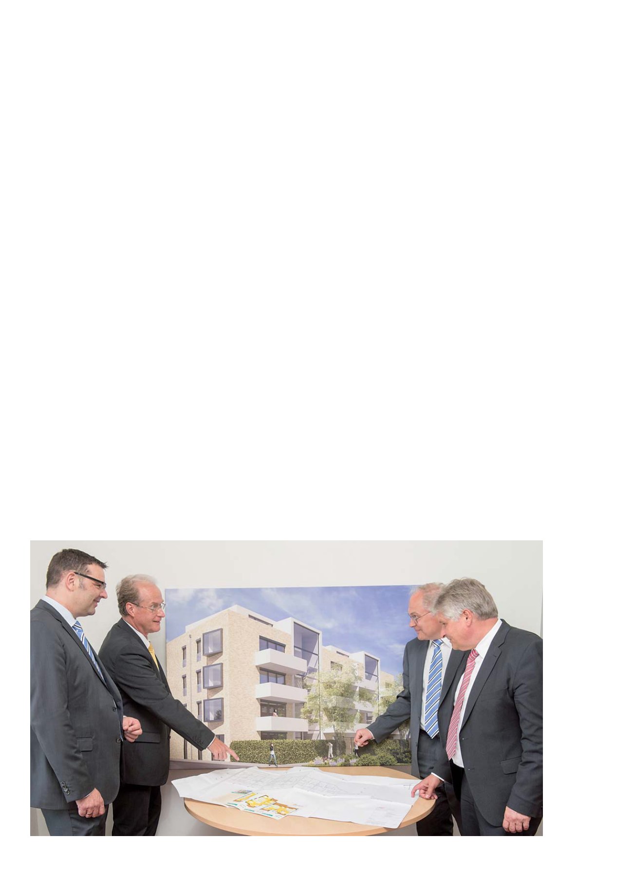 Die Vorstände der Neue GeWoGe, Wolfgang Hermann (2. v.l.) und Kai Lorenz (rechts außen), präsentieren den Firmenkunden-